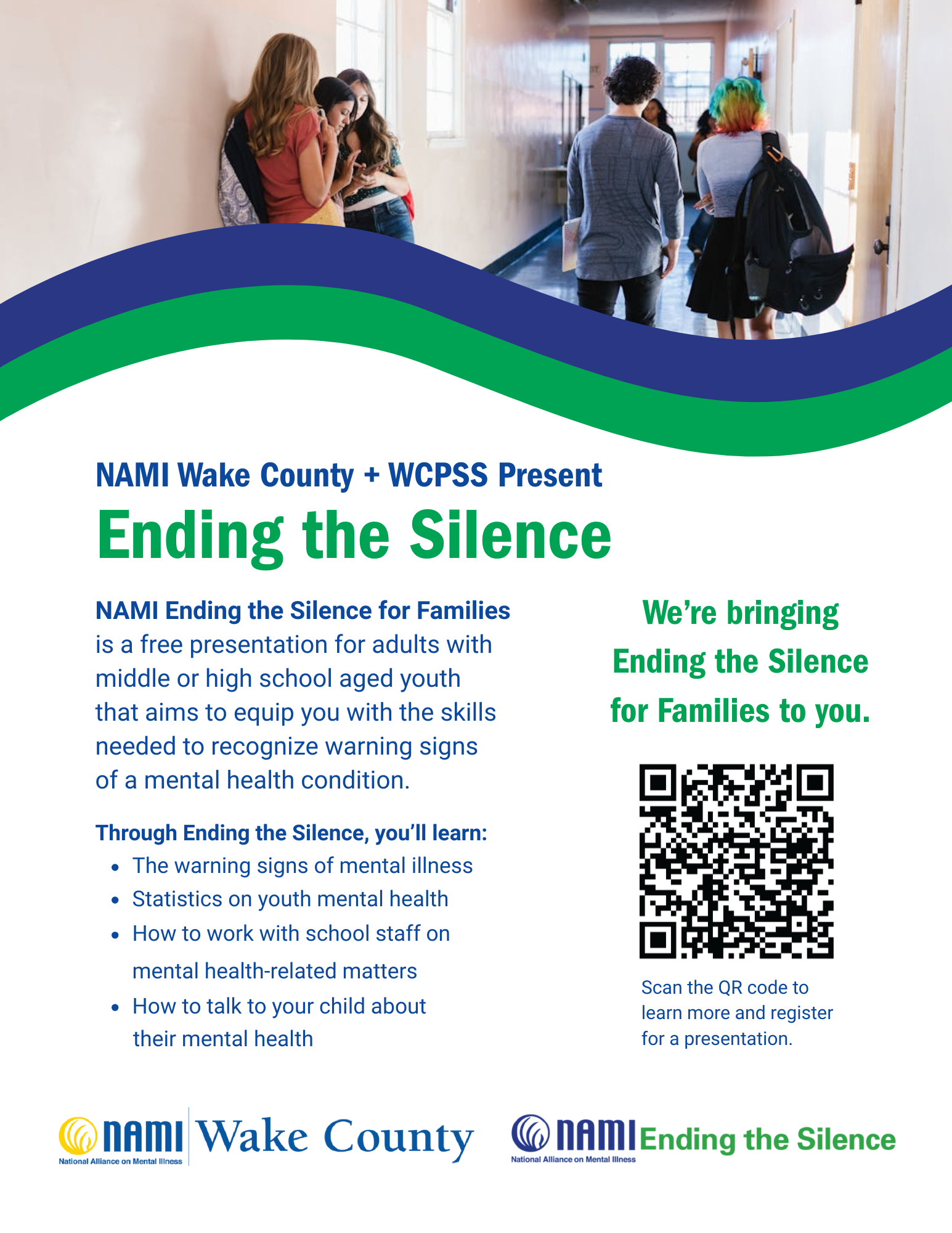 Flyer for NAMI-Wake County’s Ending the Silence program to be shared with donors, schools and stakeholders