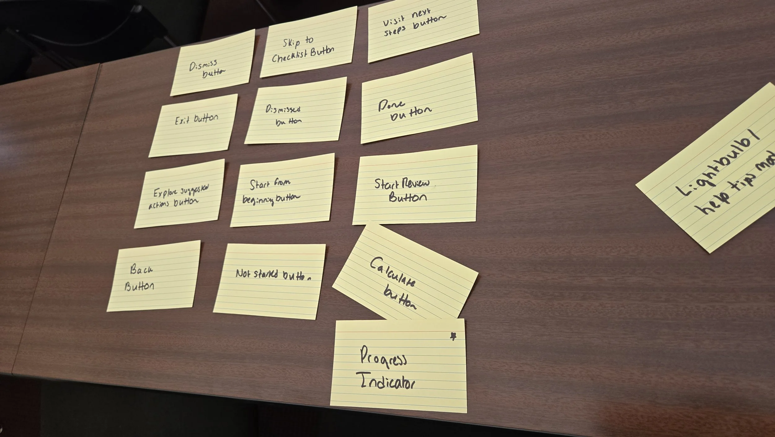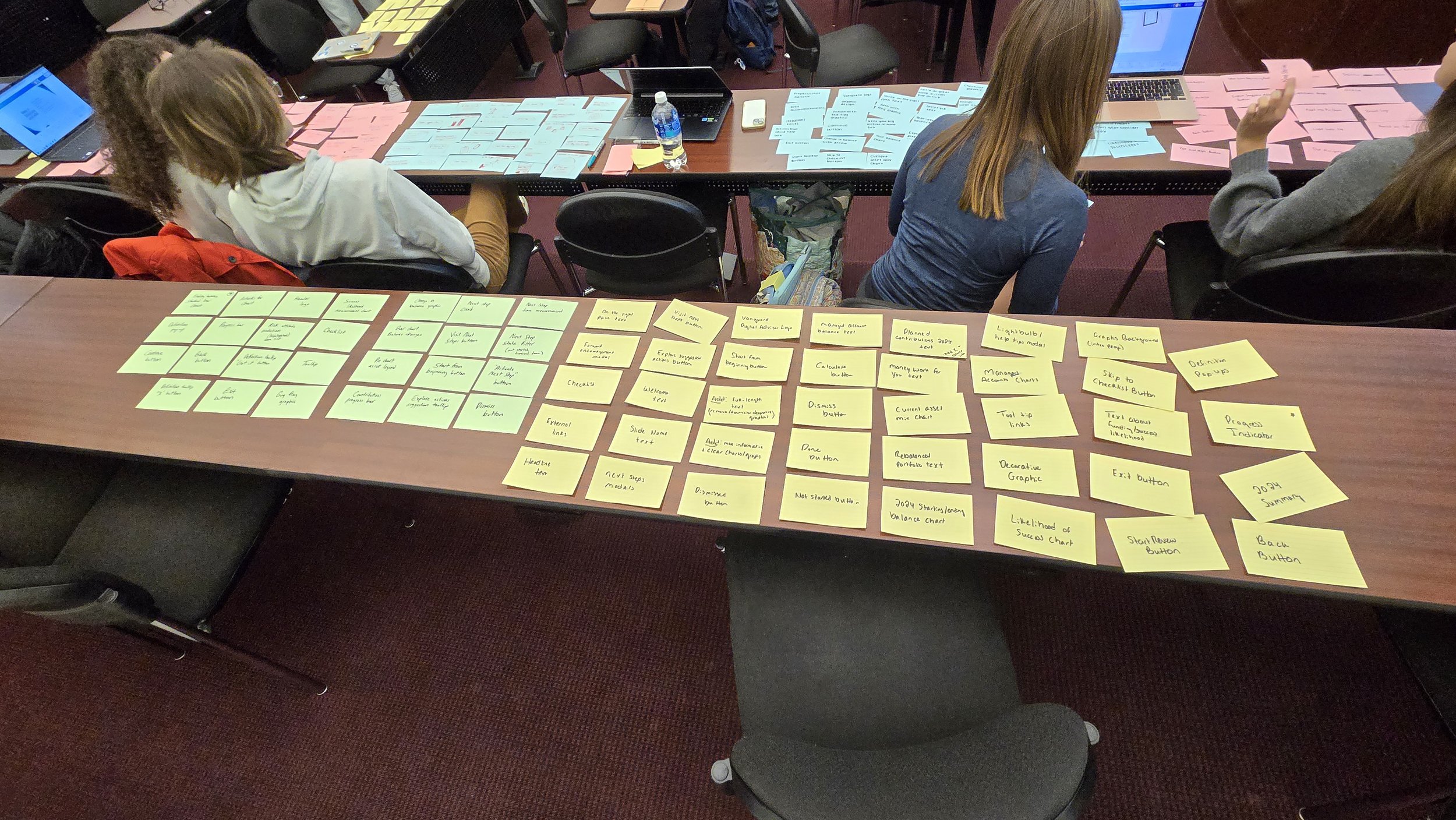 Now that it was clear who I would be designing for, it was time to start thinking about how I could create those designs. We kicked of the process in class by taking a few minutes to scan through the existing Year in Review and write each included asset type on a notecard. We then laid our cards on table and completed an open card sort where we sorted the notecards into groups based on whether they were functional or design elements. We then groups the cards into logical screen order, beginning to think about which assets would be necessary on which screens and creating the flows that would define our redesigns. My assets, included in the photos and chart below, served navigational, informational and visual purposes, each with their own place across various slides.